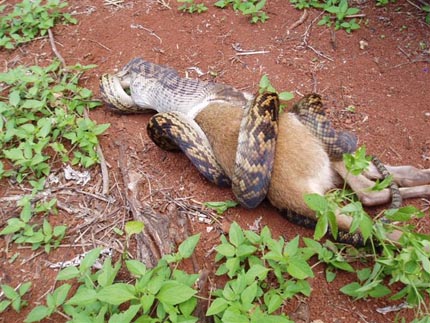 وهي ثعبان غير سام، ولكن تقضي على فرائسها بالضم والضغط على الجسم حتى يتفتت عظمها وتتفجر عروقها، وهذا بفضل جسمها الطويل وهيكلها العظمي المميز، حيث تتراوح فقـراته من 200 إلى 400 فقرة تساعدها على الحركة والعصر والسباحة. وباستطاعتها بلع رجل بالغ كاملا، وعند وجود فريسة أخرى ترمي ما في بطنها وتلتهم الفريسة الأخرى.