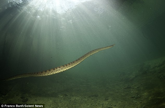 وعينا الأناكوندا وفتحتا الأنف تقعان في الجزء العلوي من رأسها لكي تتمكن من التنفس ورؤية فريستها أثناء غوصها تحت الماء. ولكي يجد ضالته، يصل قطر الثعبان من نوع أناكوندا، التي تعتبر ثعبان مائية، إلى 30 سنتيمتراً وتعتبر الأنثى أكبر حجماً من الذكر ومع أن الأناكوندا قد تتناول طعامها مرة أو مرتين في السنة إلا أنها تلتهم فريستها حية بادئة بالرأس ولأن فكيها مفصولان عن بعضهما البعض، فإن الثعابين يمكنها أن تلتهم فريسة أكبر منها بكثير.