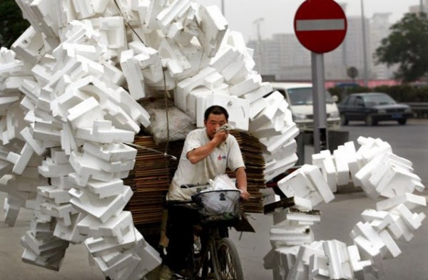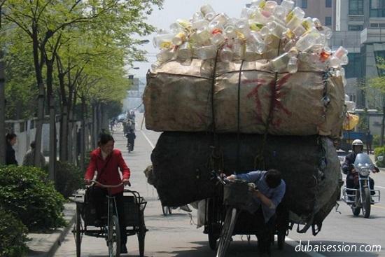 وتظهر الصور حجم المأساة التي يعيشها الصينيون وحاجتهم لتوفير المال بكل الطرق الممكنة حتى لو كلفهم الأمر حياتهم أو عرضوا أنفسهم للخطر، فتوجد سيارات تكاد تسقط على الطريق من فرط الحمولة، وسيدات يقدن دراجات صغيرة تحمل أطنانا من المخلفات التي تقوم المصانع بتدويرها وإعادة تصنيعها، وأطفال يحملوا أكياسا ضخمة لا يستطيعون التحرك بها.