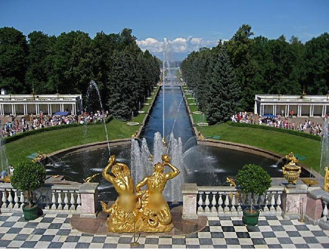 يشتهر قصر بيتر هوف (القصر الصيفي) ومجموعة الحدائق المحيطة به، بأنه من أكثر المجموعات الهندسية جمالا وفخامة وروعة ليس في روسيا فقط بل وفي أوروبا، كما يشتهر بنوافير المياه ذات الاشكال الهندسيه الرائعة التي يطغى عليها لون الذهب كسائر الروائع الروسية، ويبلغ عددها 170 نافوره تعد من معجزات الابداع الهندسي وتعد عاصمة النافورات في العالم.