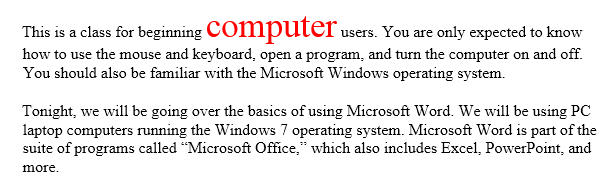 عندما يفتح أمامك الملف، يمكنك في هذه الحالة التعديل عليه بحرية، نسخ ما به من معلومات…، مثلا في الصورة بالأسفل، قمت بتغيير حجم ولون كلمة computer.