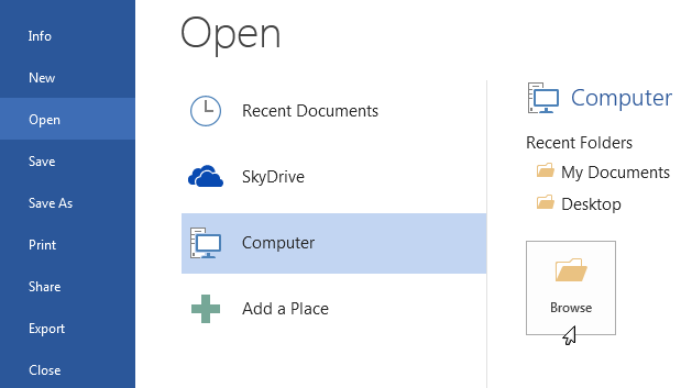 افتح برنامج الوورد 2013، ومن القائمة اختر File.