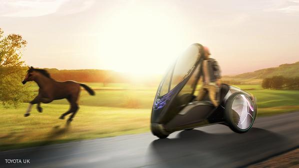 تعرض شركة تويوتا اليابانية في معرض طوكيو للسيارات هذا الشهر تصميما تصوريا فريدا لجيل ثوري من وسائل النقل يتمثل في سيارة هجينة لراكب واحد تستجيب لصوت قائدها، وتتفاعل مع تعابير وجهه، وتغير لونها حسب مزاجه، وتقاد دون عجلة قيادة أو دواسات كما لو كانت حصانا على عجلات!