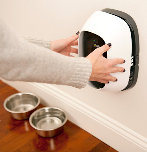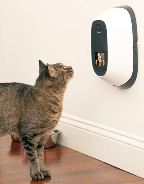 هاتف PetChatz المخصص للحيوانات الأليفة، تم تجهيزه بمايكروفون، وكاميرا فيديو، وشاشة صغيرة، وجهاز استشعار للحركة واللغة، كما يساعدك في رؤية حيوانك الأليف والتحدث معه، بل وإعطاءه مكافأة مجزية إذا تجاوب معك وشعر بوجودك.