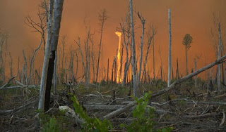 رياح سانتانا الترابية الجافة، قد نشرت حرائق في الغابات لمدة 4 أيام في جنوب كاليفورنيا عام 2008، وتكونت نتيجتها دوامة نارية، حينما إرتفعت الحرارة بشكل كبير مما أدت إى تسخين الهواء حولها فوق الغابات المشتعلة، مما أدى إلى تعاقب التيارات الهوائية من الأسفل إلى الأعلى والعكس، في دورات متعاقبة مكونة هذه الدوامة النارية من الهواء المشتعل، ومن حسن الحظ أن هذه الدوامات النارية تموت بسرعة، وقاموا بتسميتها “بدوامة التنين”.
