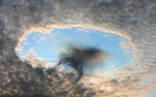 قطرات الماء في السحب والتي تكون متجمدة، يمكن أن تظل سائلة حسب درجات الحرارة، وعند صعود الطائرة خلال طبقات الجو العليا تدفع الأجنحة الهواء تحتها، بحيث يقل ضغط الهواء فوق الأجنحة ويبرد الهواء فوق الأجنحة وإلى درجة -40 درجة مئوية، وهي الدرجة التي تحول بخار الماء إلى ثلج في طبقات الجو العليا، مما يكون كريستالات الثلج على الغيوم، ونتيجة التحولات في الحالات من الصلبة إلى الماء والغاز والعكس، تتحول الطاقة مكونة فجوة وسط الغيوم.