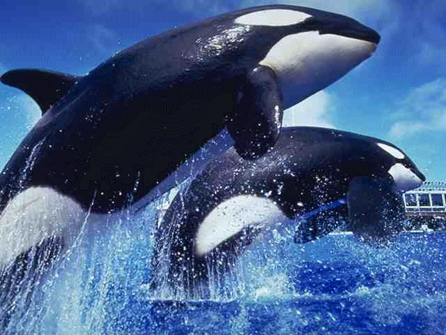 تقفز الحيتان القاتله من الماء وتهبط مرة على الجنب الأيسر ومره على الجنب الأيمن ومره على ظهرها .. والسبب هو: