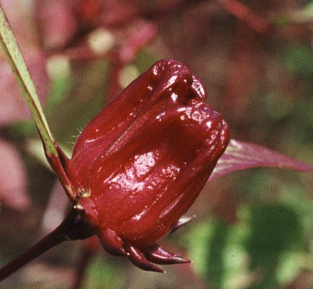 الشجيرة ذات أزهار حمراء جميلة، وتزرع للزينة أو للإنتاج، والجزء المستعمل منها هو السابلات (الأوراق) التي تحيط بالزهرة وتكون بعد تجفيفها إما حمراء داكنة أو فاتحة.