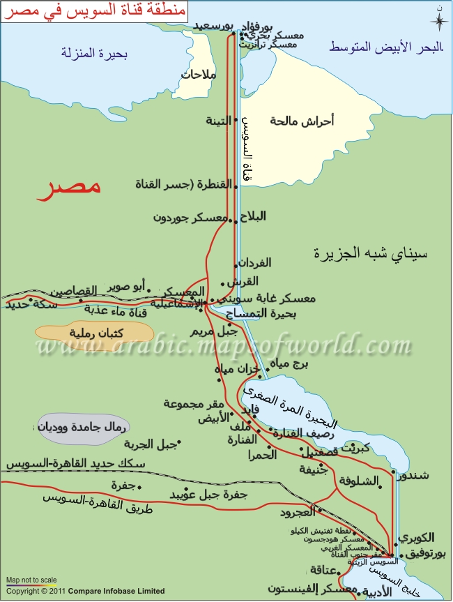 قناة السويس، هي ممر مائي صناعي بين مدينة بورسعيد (مصر) على البحر الأبيض المتوسط، ومدينة السويس (مصر) على البحر الأحمر. وتقسم القناة إلى قسمين، شمال وجنوب البحيرات المرّة.