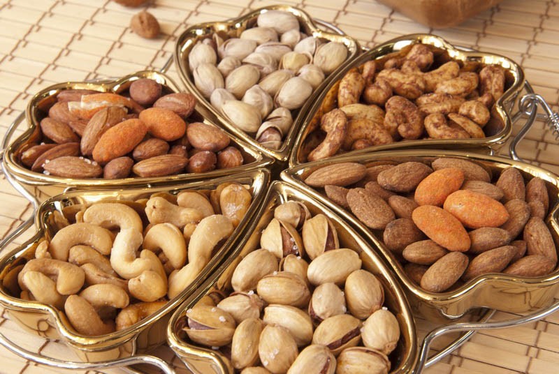 واكتشفت أخر الدراسات التي أجريت في هذا الشأن أن أكل اللوز والفستق الحلبي والبرازيلي والكاجو والبندق وحب الصنوبر خمس مرات أو أكثر أسبوعياً يخفض خطر الإصابة بالسكري وأمراض القلب.