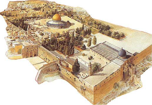 – قبة الصخرة المشرفة، (ذات القبة الذهبية) والموجودة في موقع القلب بالنسبة للمسجد الأقصى (ويستخدم الآن كمصلى للنساء يوم الجمعة).