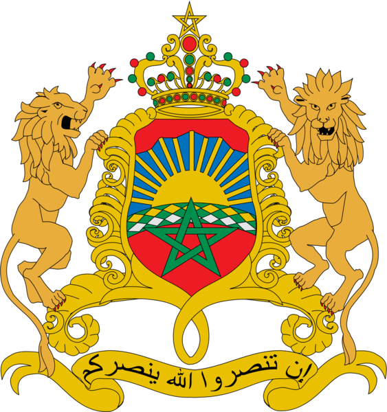 هو شعار الدولة المكون من الرموز الوطنية المغربية، تم اعتماده في 14 أغسطس 1957. الشعار ذهبي يحتوي أرضية حمراء وخاتم سليمان الخماسي بالأخضر، شمس ساطعة ذات 15 شعاعًا، زخرفة باللونين الذهبي والفضي، أسدين أطلسيين في الجانبين، تاج ملكي يضم ألوان العلم، ولافتة مكتوب عليها “إن تنصروا الله ينصركم”.