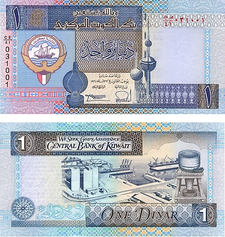 الدينار، ويتكون من 1000 فلس، وتنقسم الصكوك النقدية إلى ستة فئات وهي (ربع دينار، نصف دينار، دينار، خمسة دنانير، عشرة دنانير، عشرين دينار). كما أن العملات المعدنية لها 6 فئات (فلس “تم إلغاؤه”، 5 فلوس، 10 فلوس، 20 فلس، 50 فلس و100 فلس). ويعتبر الدينار الكويتي صاحب أعلى سعر صرف في العالم ويساوي الدينار الواحد 3.5460 دولارًا أمريكيًا تقريبًا.